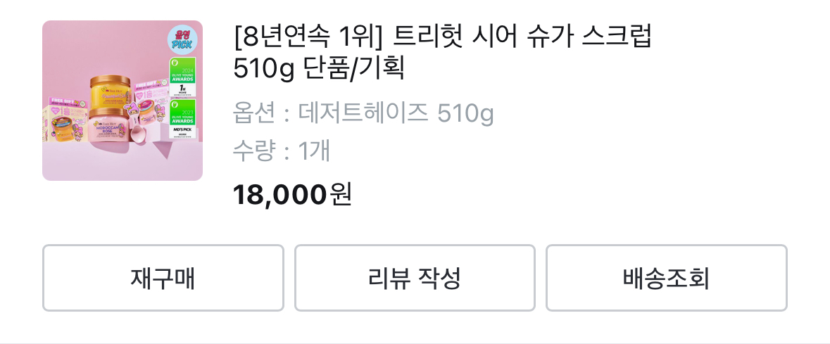 저는 여러 가지 바디스크럽을 써봤지만, 재구매 의사가 드는 제품은 많지 않았어요. 그런데 트리헛 데저트헤이즈는 이번이 처음인데도 바로 재구매 각!